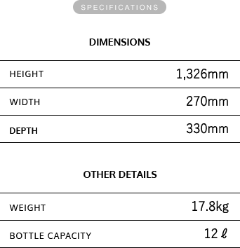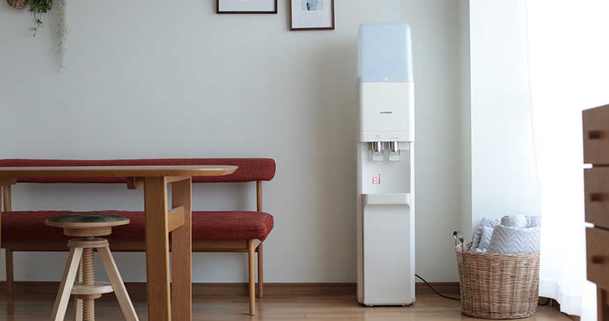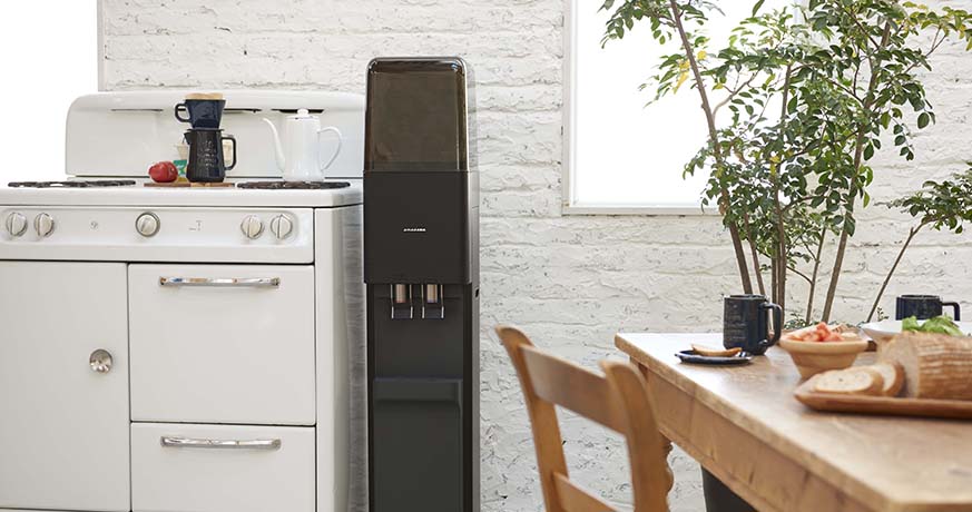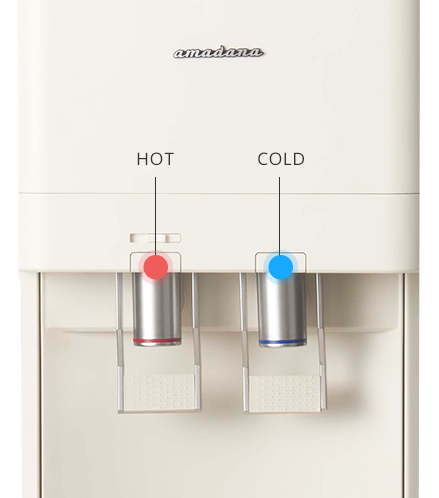 Hot (about 87℃) ,cold (about 6℃) , and room temperature water are available in one dispenser, and both are immediately accessible.