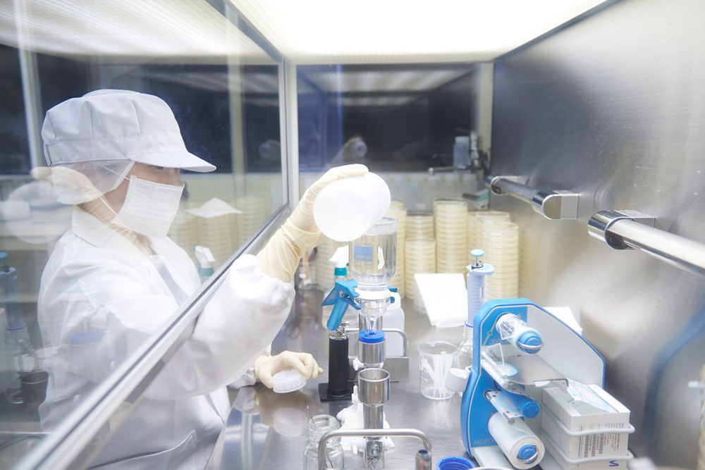 4段階のフィルター除菌や無菌のクリーンルームでのボトリングを行っております。