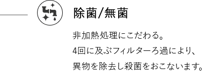 4回に及ぶフィルターろ過により、異物を除去し殺菌をおこないます。