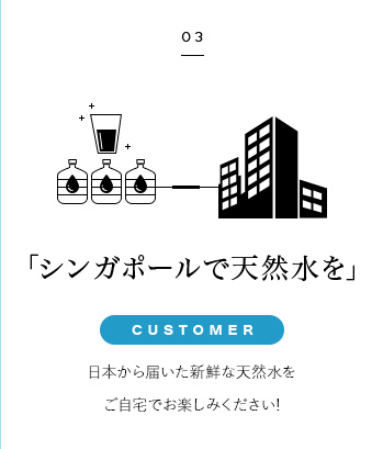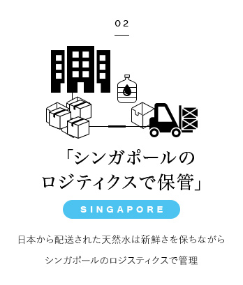 日本の富士山の地下から採水した新鮮な天然水を、新鮮さを保ちながらシンガポールへと配達。