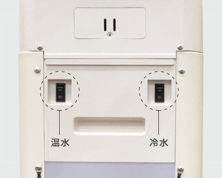 ※定期的に温水スイッチ、冷水スイッチを入れた状態で出水し、ウォーターサーバー内の水を循環させてください。