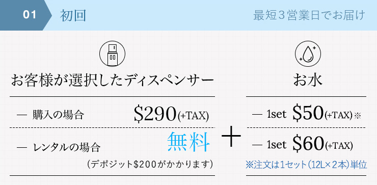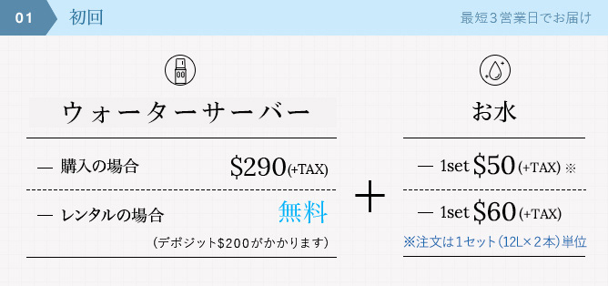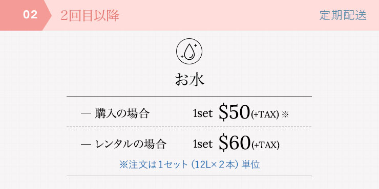 初回以降のお支払いは「お届けするお水の代金のみ」となります。